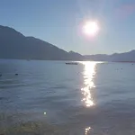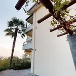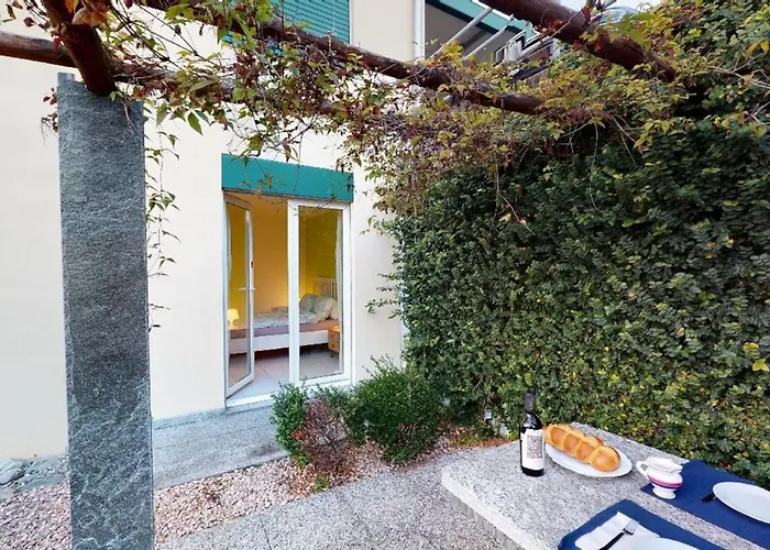 Die 85 m^2 große Ferienwohnung Casa Delle Vigne: Giardino, Pergola E Vista Lago Minusio liegt etwa 25 Fußminuten von der Kirche der Madonna del Sasso entfernt und bietet einen Blick auf den See. Das 2-Zimmer-Apartment verfügt über eine Terrasse mit einem Blick auf die Berge.